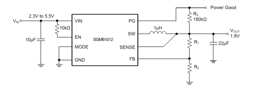 SGM61012支持2.3V至5.5V電壓輸入和0.5V至4V電壓輸出,最大持續(xù)輸出電流分別可以達(dá)到1.2A和2A,輸出電壓精度全溫度下低于±2.7%。芯片內(nèi)置了實時過溫保護(hù)功能和逐周期最大電流檢測功能,可在短路和過載情況下起到安全有效的保護(hù)。