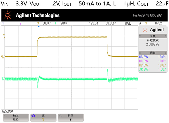 圖3SGM61012 5mA-1A及50mA-1A負(fù)載瞬態(tài)響應(yīng)波形