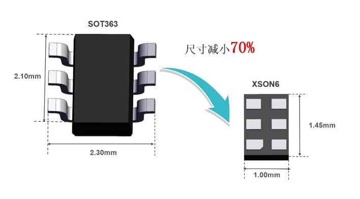 為滿足可穿戴設(shè)備、工業(yè)控制、網(wǎng)絡(luò)通信等各種應(yīng)用中邏輯器件小型化需求,I-CORE推出超小極薄無引腳封裝。 在產(chǎn)品中采用更小的封裝可以有效節(jié)省PCB空間,降低制造商成本。 與業(yè)界普遍使用的有引腳封裝如SOT相比,超小極薄無引腳封裝可節(jié)約高達(dá)87%、70%的PCB空間。