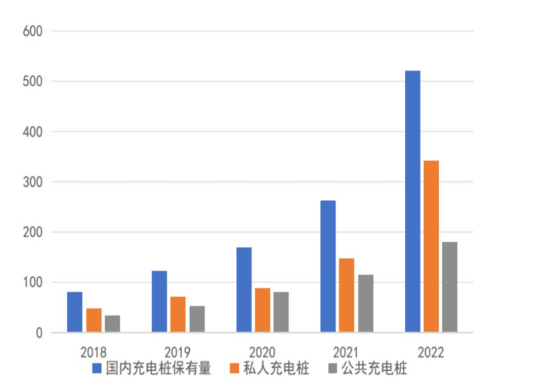 近年來,國內(nèi)充電樁建設(shè)增速較快。2022年全年充電基礎(chǔ)設(shè)施增量為259.3萬臺,其中公共充電樁增量同比增加91.6%,隨車配建私人充電樁增量同比增加225.5%。截至2022年12月,全國充電基礎(chǔ)設(shè)施累計數(shù)量為521.0萬臺,同比增加99.1%。