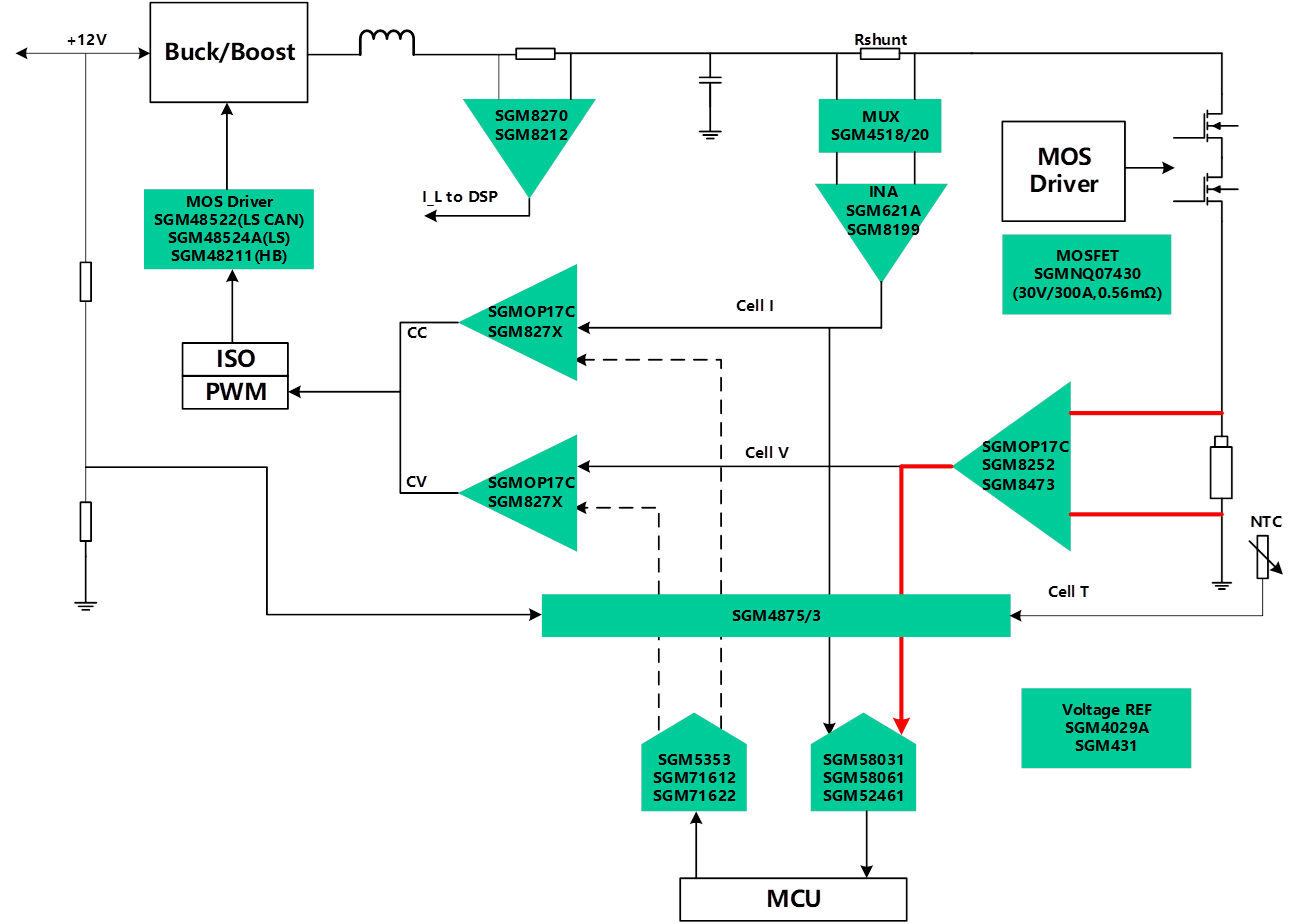 隨著個人便攜設(shè)備和新能源汽車快速發(fā)展,鋰電池市場需求持續(xù)增長,各個電池廠商對化成過程中鋰電池充放電電流/電壓測量的誤差要求也顯著提高,對整個測量控制電路中放大器、ADC/DAC、電壓基準的誤差要求也相應(yīng)提高。同時,在激烈的市場競爭下,方案性價比高也是各個廠家要求之一。圣邦微電子能用更低成本實現(xiàn)更高精度、更高功率的電池化成I/V控制。