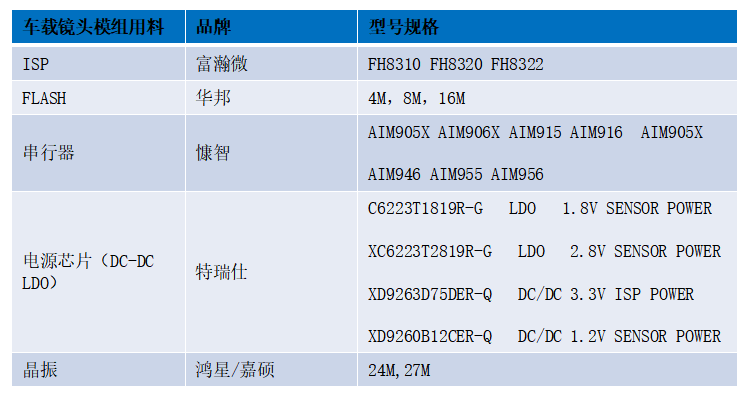 當(dāng)車載攝像頭開始工作時,光線將透過鏡頭,經(jīng)過圖像傳感器將光信號轉(zhuǎn)化成電信號,然后經(jīng)過A/D(模數(shù)轉(zhuǎn)換器)后變?yōu)閿?shù)字圖像信號,再由ISP(圖像信號處理器)進(jìn)行色彩校正、降噪等一系列加工后,經(jīng)由串行器等將處理后的圖像數(shù)據(jù)傳輸給中央處理器。連接器主要用于固定攝像頭。