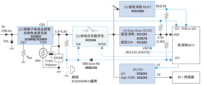 - 后級(jí)使用低壓MCU,可通過LDO XC6241或PMOS直接供電
