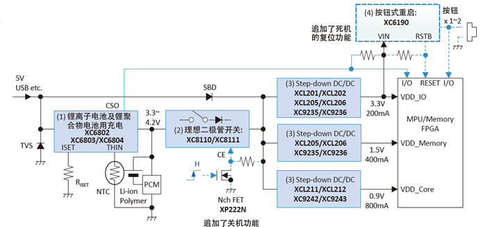 - 負(fù)載開關(guān)XC6194:搭載硬件開關(guān)及軟件關(guān)斷功能