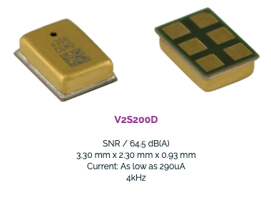 V2S200D體積小、信噪比(SNR)高、功耗低,對(duì)于那些希望提升產(chǎn)品用戶體驗(yàn),同時(shí)解決重要工業(yè)設(shè)計(jì)(ID)和電池壽命限制問(wèn)題的OEM/ODM,它提供了理想的解決方案。此外,在集成到系統(tǒng)中后,它可仿真具有脈沖密度調(diào)制(PDM)接口的數(shù)字麥克風(fēng),使硬件和軟件開(kāi)發(fā)變得輕松自如。
