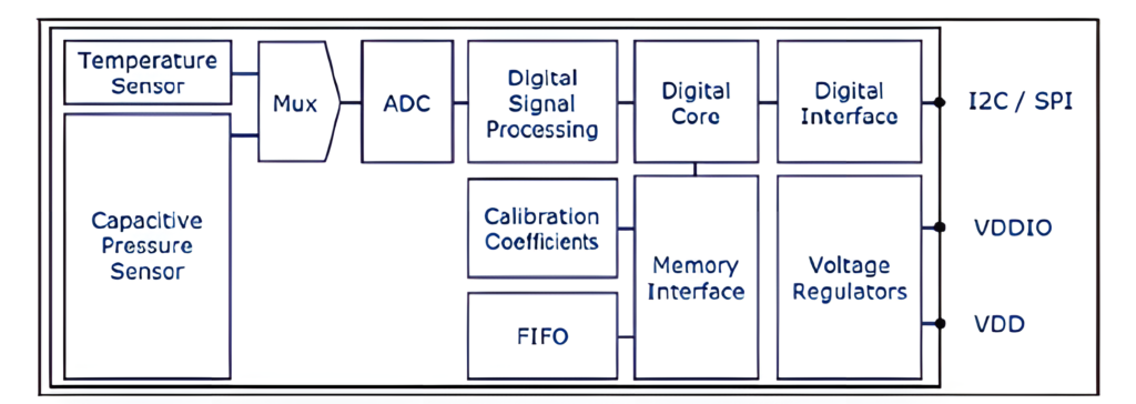HP303B,特點(diǎn):是一款小型化數(shù)字氣壓傳感器,具有高精度和低電流消耗等特點(diǎn),并且能夠測(cè)量壓力和溫度。器件采用密封電容式傳感元件。