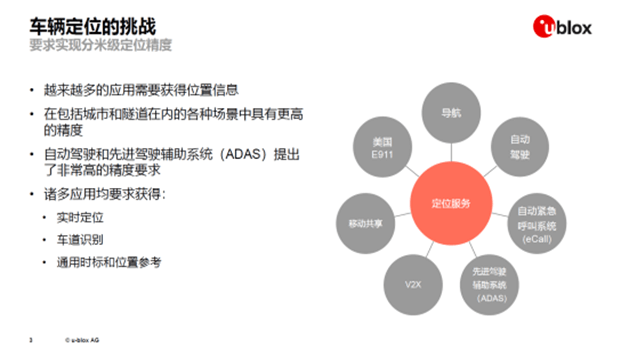對于ADAS或者說高級駕駛員輔助系統(tǒng)來說,u-blox提供了非常精準(zhǔn)的定位服務(wù)的高可用性,可以通過實(shí)時(shí)更新高分辨率的高精地圖,通過更新的定位來輔助駕駛員更好的操控汽車,并且通過融合了不同科技來實(shí)現(xiàn)了分米級的精準(zhǔn)定位。