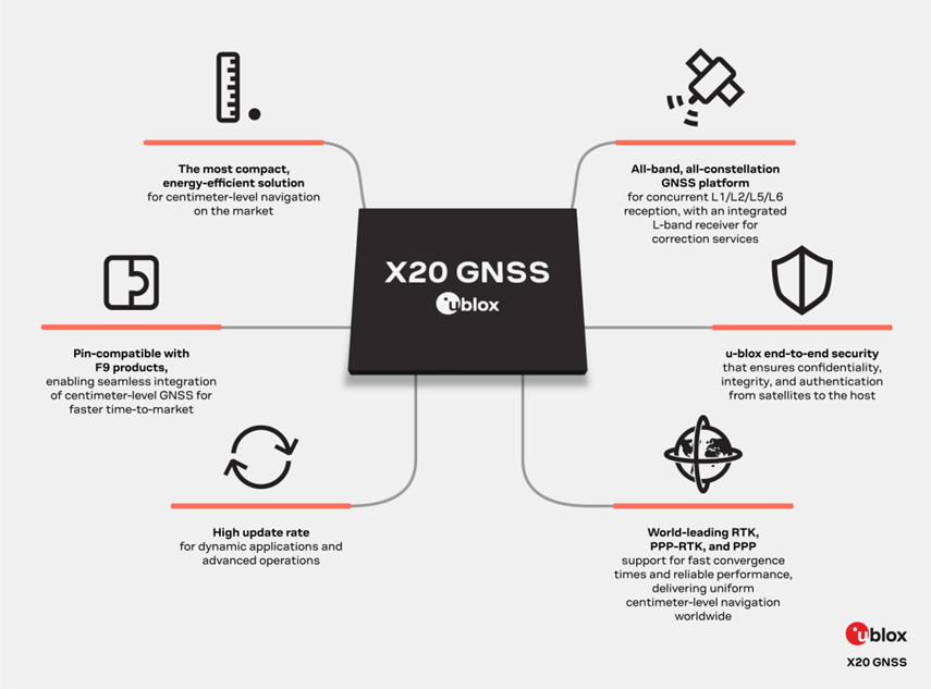 U-blox ZED-X20P全頻段高精度GNSS模塊,它能夠接收來自GPS、Galileo、北斗、QZSS和NavIC衛(wèi)星的所有GNSS頻段(包括L頻段)的信號(hào)。在單芯片接收器上的集成度高,可實(shí)現(xiàn)全新的系統(tǒng)架構(gòu),為工業(yè)導(dǎo)航和機(jī)器人市場(chǎng)(產(chǎn)品如:無人駕駛車輛 (UAV)、導(dǎo)引系統(tǒng)和自動(dòng)轉(zhuǎn)向應(yīng)用)創(chuàng)造價(jià)值。