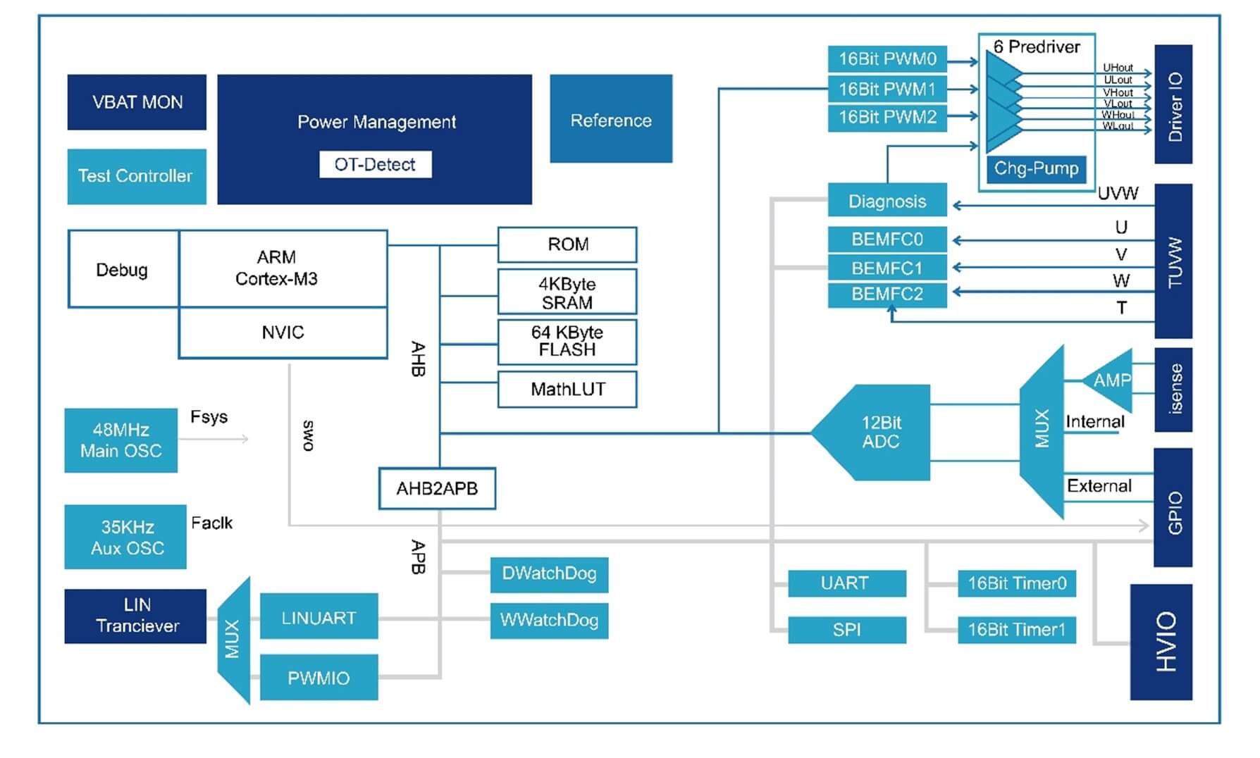 納芯微精心打造的高集成度嵌入式電機(jī)控制 IC NSUC1602,依托其超群絕倫的高集成特性以及強(qiáng)勁有力的電機(jī)控制算法,在新能源汽車關(guān)鍵執(zhí)行器的管控進(jìn)程中扮演著不可或缺的關(guān)鍵角色。該芯片內(nèi)部深度融合 ARM? Cortex? – M3 內(nèi)核與高效能的三相預(yù)驅(qū)電路,得以全方位支持更為前沿、復(fù)雜的電機(jī)控制算法,涵蓋 FOC 矢量控制或無(wú)感六步換相控制等先進(jìn)技術(shù)。這些高階算法的廣泛應(yīng)用,極大幅度地提升了電動(dòng)機(jī)與電子設(shè)備的溫度管理精度與效率,為智能三相無(wú)刷直流電機(jī)控制領(lǐng)域,諸如汽車電子冷卻扇、電子水泵等關(guān)鍵部件,提供了堅(jiān)如磐石的技術(shù)支撐。此外,NSUC1602 還經(jīng)由一系列匠心獨(dú)運(yùn)的優(yōu)化設(shè)計(jì),促使系統(tǒng)整體能效得到顯著提升,即便在高負(fù)荷運(yùn)行的極端環(huán)境下,依然能夠確保穩(wěn)定、可靠的卓越表現(xiàn)。