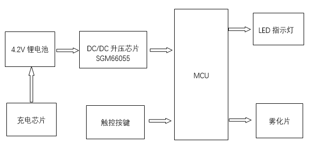 在醫(yī)用霧化器中,需要鋰電池進(jìn)行持續(xù)供電,但是鋰電池的電壓會(huì)隨著電量的釋放而發(fā)生下降,所以就需要一顆輸出能力強(qiáng),體積小的DCDC完成升壓變換。國產(chǎn)半導(dǎo)體廠家圣邦微電子旗下的升壓穩(wěn)壓器SGM66055在此類應(yīng)用中匹配度很高。SGM66055可以轉(zhuǎn)換為省電模式,通過降低開關(guān)頻率保持高效率。它的防鳴電路可以抑制充電寄生電容,減少電磁干擾。經(jīng)過SGM66055升壓芯片升到5V給霧化器的主控MCU供電,它的輸入電壓2.5-4.5V,固定輸出電壓5V, 連續(xù)輸出電流高達(dá)2.4A,峰值輸出電流可達(dá)4.2A,即使最小輸出負(fù)載電流也可達(dá)0.9A。 開關(guān)頻率2.2Mhz,所需配置的電感感值小,節(jié)約布板面積。輸出紋波小,調(diào)整迅速。輕載高效功能可以大大降低靜態(tài)功耗,延長電池待機(jī)時(shí)間,完全符合醫(yī)用霧化器的供電需求。
