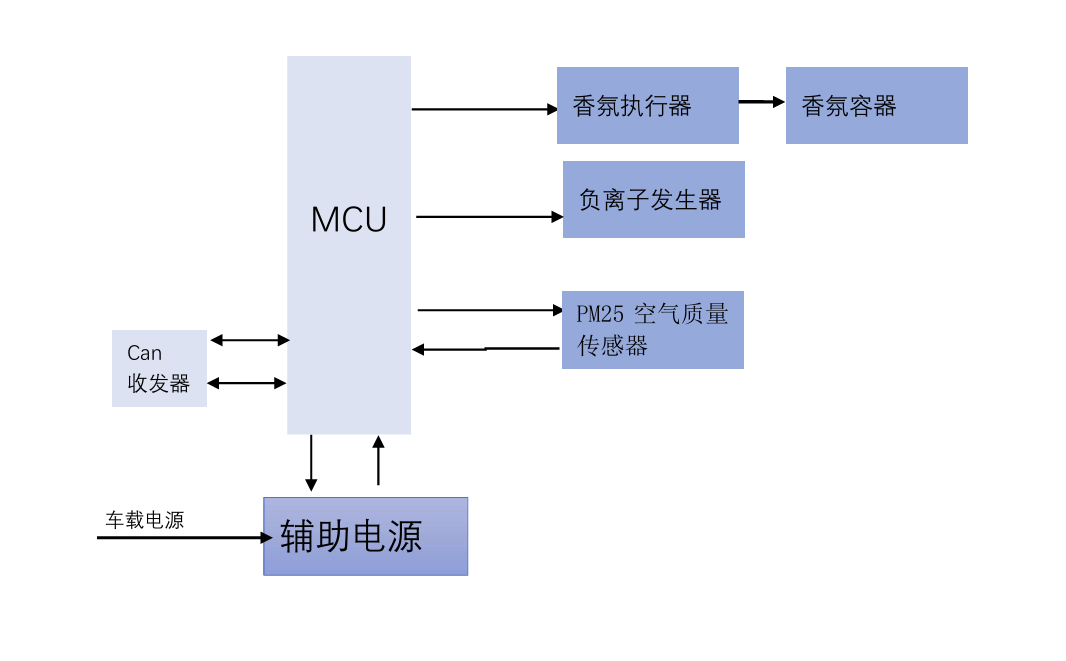 車內(nèi)香氛系統(tǒng)主要由香氛控制器、?香氛?qǐng)?zhí)行器、?香氛容器和?香氛瓶組成。香氛控制器包括記憶模塊和控制模塊,用于存儲(chǔ)多種香氛主題并通過(guò)車機(jī)顯示屏向用戶推送。香氛?qǐng)?zhí)行器包括?風(fēng)道、香氛容器、閥門(mén)以及?鼓風(fēng)機(jī),當(dāng)不同的香氛主題被選擇時(shí),控制系統(tǒng)向?qū)?yīng)的執(zhí)行器發(fā)送信號(hào),控制香氣濃度和釋放。