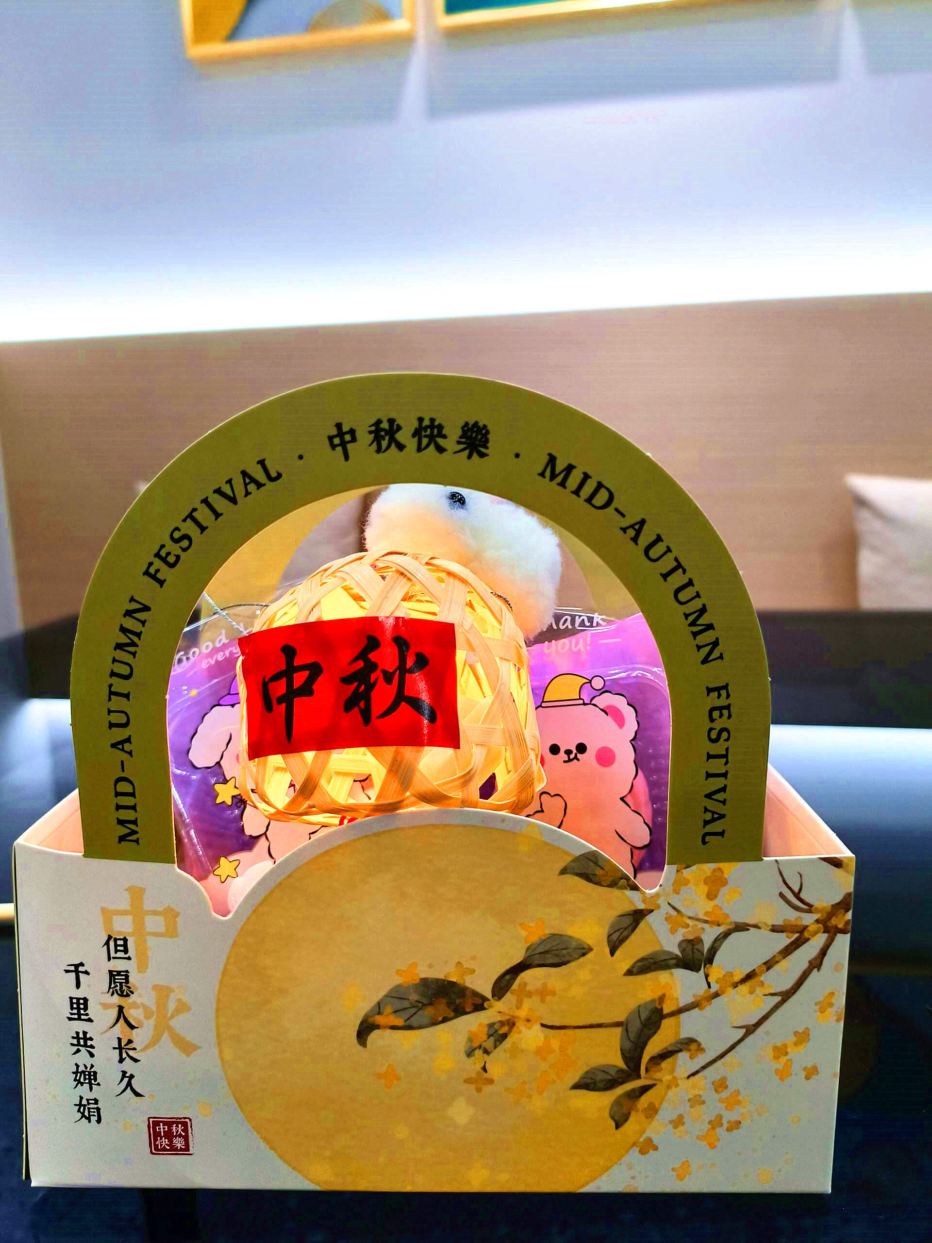 ?? 為慶祝中秋和國慶雙節(jié),行政人事部精心布置了會議室做為本次活動的主場館,長長的會議桌上放滿了月餅、美食、水果和飲料……營造出濃濃的節(jié)日氣氛。同時,在前臺大廳區(qū)域組織了“投壺換年假”、“組裝小燈籠”、“親手做月餅”等系列趣味性活動。