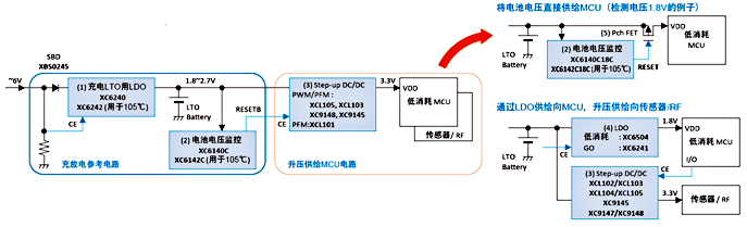 - 后級(jí)使用低壓MCU,可通過LDO XC6241或PMOS直接供電